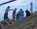 いよいよ建方工事です。朝から大工さん7人、頭(かしら)3人、重機オペレーターと11人体制でスタート。